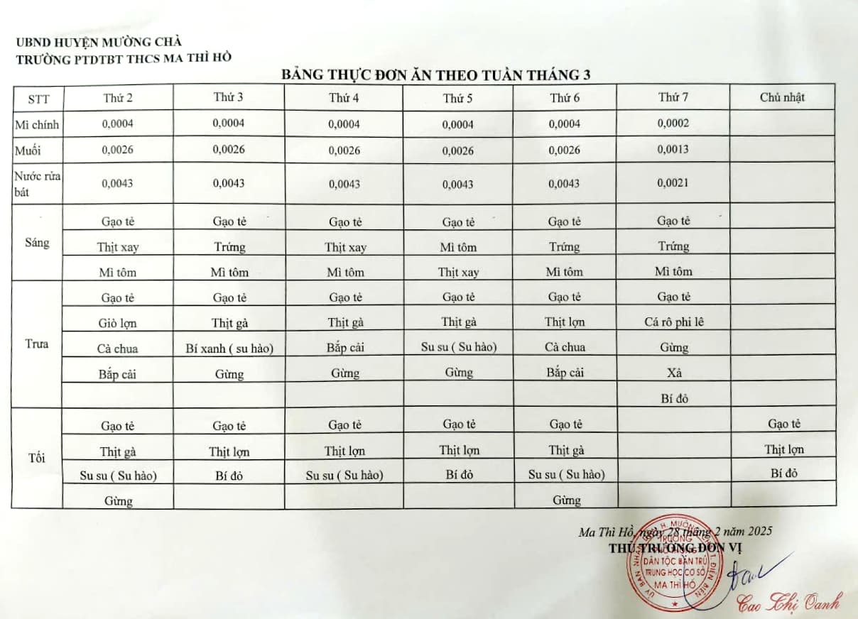 BẢNG THỰC ĐƠN ĂN THEO TUẦN THÁNG 3