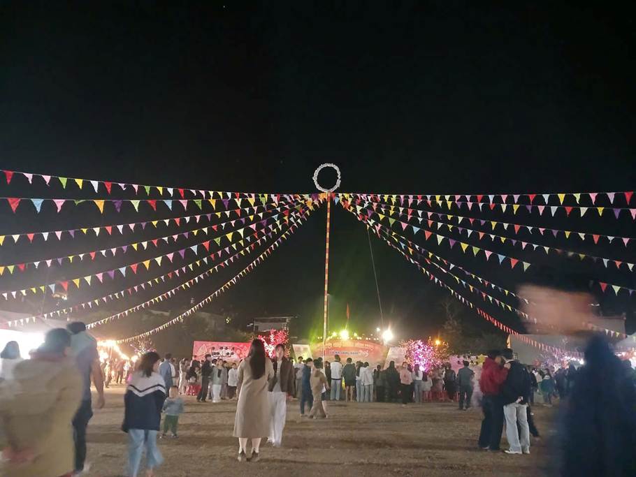 Hội chợ khai mạc lúc 20h tối ngày 4/2/2026. Không gian màu sắc nổi bật cờ đuôi nheo, cờ đổ sao vàng, cờ đảng búa liềm tung bay trong gió, cùng tiếng cười, tiếng nhạc xuân và sắc đỏ câu đối như thổi sự tưng bừng của hội chợ lên cao. Sau các tiết mục văn nghệ đặc sắc, và lời phát biểu của đồng chí Nguyễn Minh Phú- Phó chủ tịch tỉnh Điện Biên chúc tết tới bà con, cùng lời nhắn nhủ của đ/c Trần Hồng Quân- Bí thư Đảng ủy, chủ tịch xã Na Sang trước thềm năm mới, và ăn tết an toàn, vui vẻ năm 2026; buổi trải nghiệm mua sắm tại hội chợ càng thêm phần náo nhiệt. Gian hàng khối THCS bán hàng các nông sản và thêm đồ ăn, nước uống, câu đối, vẽ tranh đá, thuê đồ dân tộc rộn ràng, tấp nập.