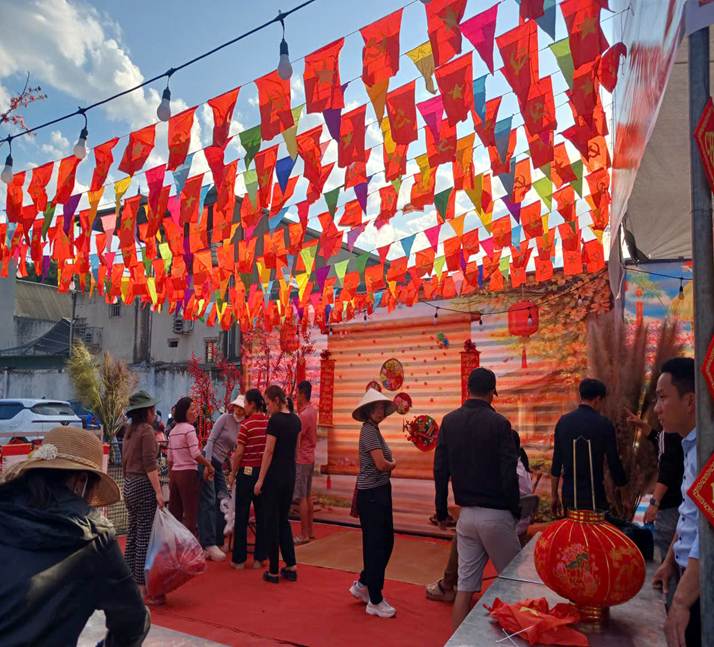 Bắt đầu từ sáng sớm ngày 4/2/2026, các thầy cô khối Trung học cơ sở cùng các tiểu thương, các khối trường khác đến rất sớm để trang trí gian hàng và trưng bày sản phẩm của địa điểm mỗi trường. Những cành đào tươi thắm sắc hoa, những bông lau nở tung trắng xóa mang đậm bản chất của núi rừng Tây Bắc kết hợp với màu đỏ ấm áp, đầy ý nghĩa của những câu đối Tết của trường PTDTBT THCS Na Sang, những bức tranh do các thầy cô Mỹ Thuật trường PTDTBT THCS Ma Thì Hồ mang đến, Những nông sản, đặc sản của người Tây Bắc của bà con Ma Thì Hồ được nhanh chóng được bày bán các nông sản của địa phương ra như miến rong, cho đến chuối tiêu, Rượu Mông pê Ma Thì Hồ, măng khô, gạo nếp nương, dứa mật, dưa mèo, quả sổ, quả mắc có,…. Rồi sự đặc sắc càng tăng lên khi gian hàng có thêm khu trải nghiệm trang phục dân tộc do trường Sa Lông chuẩn bị cho khách mua thử đồ, check in, chụp ảnh,… tất cả tạo nên một không gian độc đáo cho hội chợ xuân càng thêm náo nhiệt, giúp văn hóa truyền thống hiện diện sống động, không dừng ở khẩu hiệu.