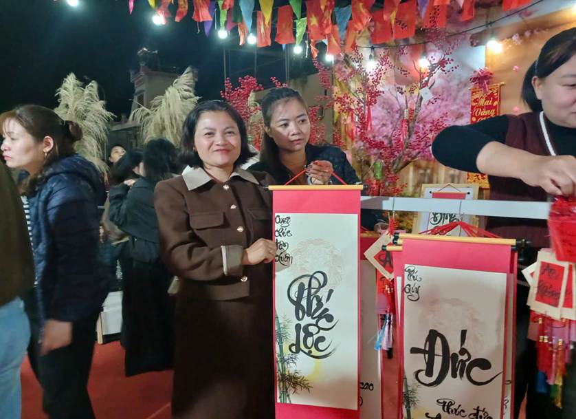 Bên cạnh đó, các thầy cô Trường PTDTBT THCS Na Sang cùng các em học sinh của trường đã mang đến cho khách tham gia hội chợ trải nghiệm “Nơi biến ước mơ thành sự thật” bằng cây “Điều ước”. Du khách tham quan được cởi mở lòng mình, viết nên những điều ấp ủ, ước mơ cho năm mới may mắn, bình an, và thịnh vượng. Và năm nay, trên gian hàng hội chợ xuân, tranh thư pháp như “ Hiếu thảo”, “ Đức”, “ Tài”, “ Nhẫn” được mang bày bán rất đắt khách, vừa bán nhưng lại vừa như lời nhắc nhở với tất cả mọi người đề cao giá trị nhân sinh quan mà con người chúng ta cần giữ đạo để sống tốt hơn mỗi ngày.