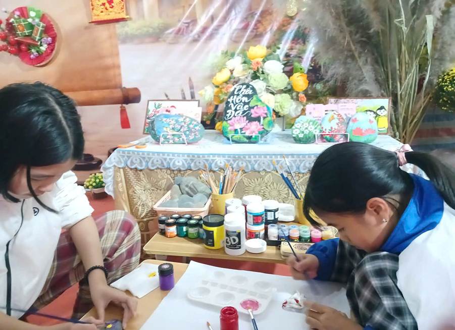 Để tăng tính hấp dẫn các bạn nhỏ và khách mua hàng, Trường THCS số 1 Na Sang đã tạo thêm khu trải nghiệm “ Thổi hồn cho đá”. Tại đây, các bạn nhỏ và khách có thể sáng tạo nên những bức tranh ngộ nghĩnh của riêng mình trên những viên sỏi, viên đá mà ta cứ ngỡ chúng chỉ có thể ngoài ven suối. Qua đó, khuyến khích các bạn nhỏ thêm yêu thích nghệ thuật mỹ thuật, yêu thiên nhiên, và phát triển sự sáng tạo, năng lực cảm nhận cái đẹp cho cuộc sống thêm yêu đời và mở rộng phong phú nội tâm.