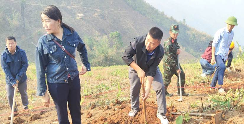 Thầy Cà Văn Quyết GV trường tham gia trồng cây cùng với nhân dân đóng trên địa bàn Xã na sang