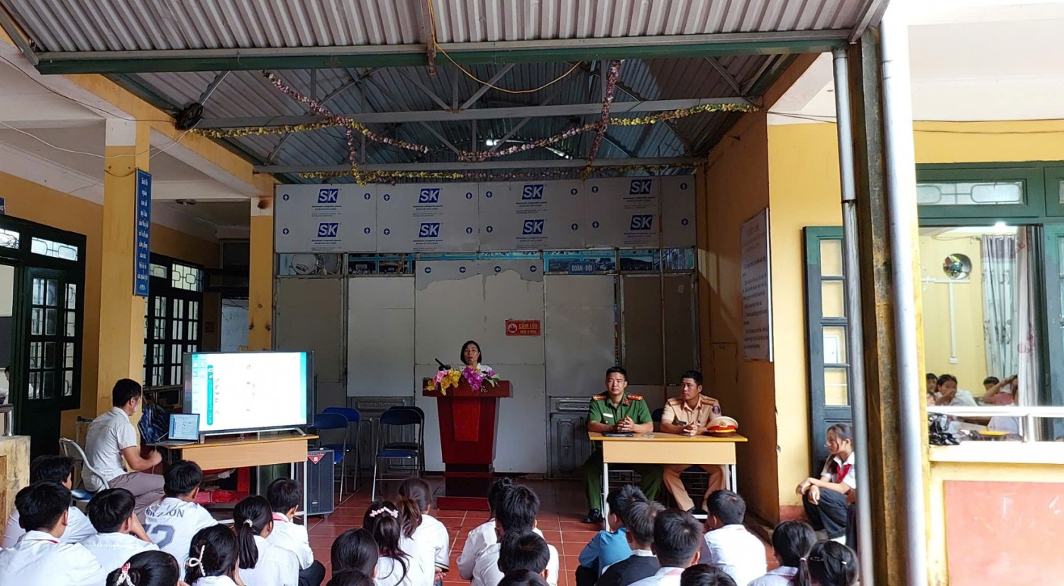Sáng ngày 22/9/2025, tại Trường Phổ thông Dân tộc Bán trú THCS Ma Thì Hồ, một buổi tuyên truyền về an toàn giao thông đã diễn ra với sự tham gia của các cán bộ công an xã.