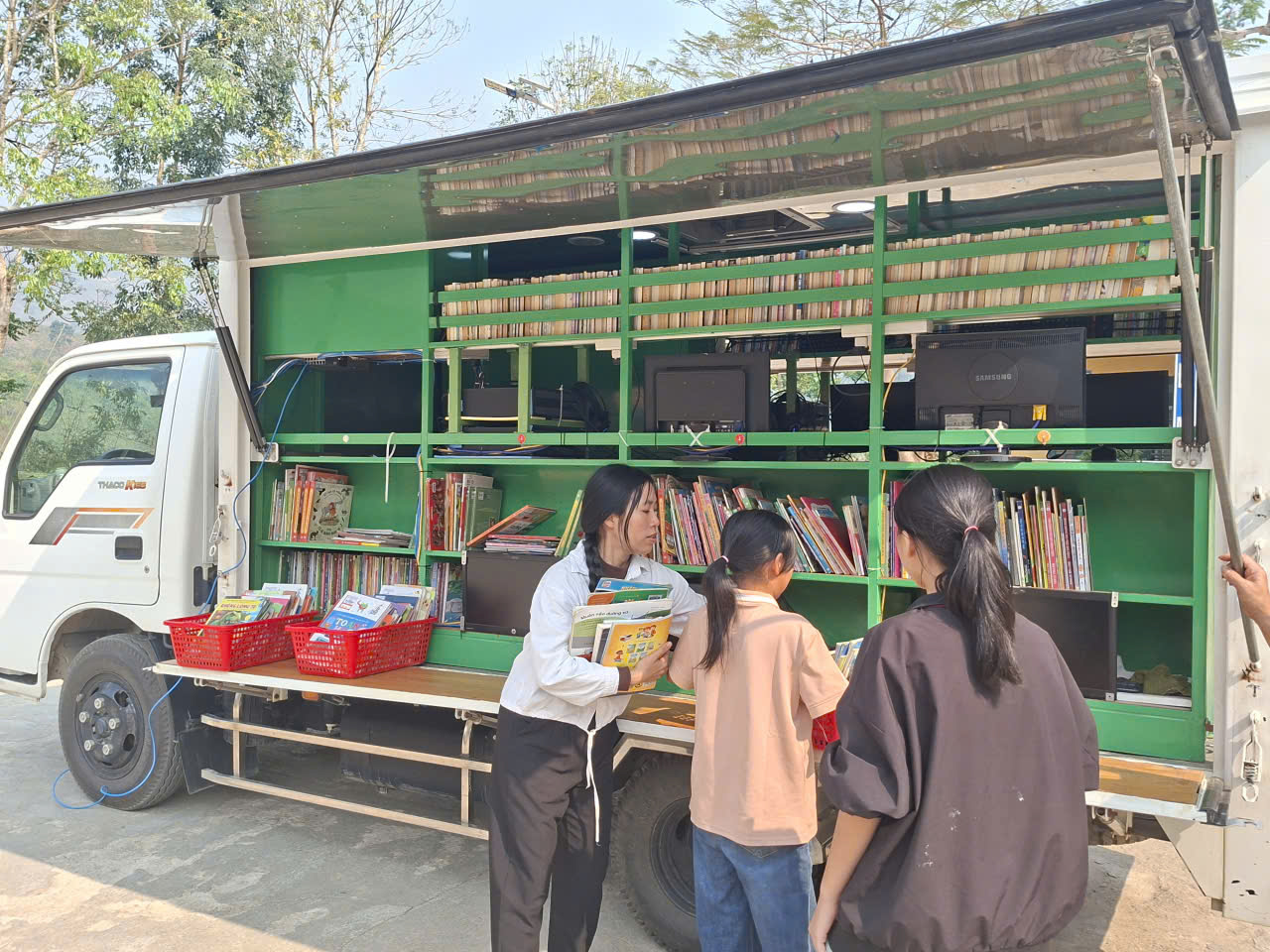 Mang đến trường " Chuyến xe tri thức" với xe lưu động, trên xe là hơn 2.500 - 3.500 đầu sách phong phú, đa dạng các loại sách, báo, tài liệu tham khảo phù hợp với nhiều lứa tuổi, từ sách giáo khoa, truyện thiếu nhi, sách kỹ năng sống đến các tài liệu khoa học, lịch sử, văn hóa. Không chỉ dừng lại ở việc đọc sách truyền thống mà còn nâng cao kỹ năng số cho học sinh thông qua: Hướng dẫn học sinh tra cứu thông tin phục vụ học tập trên máy tính trang bị sẵn trên xe. Các video tư liệu sinh động giúp các em tiếp cận kiến thức một cách trực quan nhất.